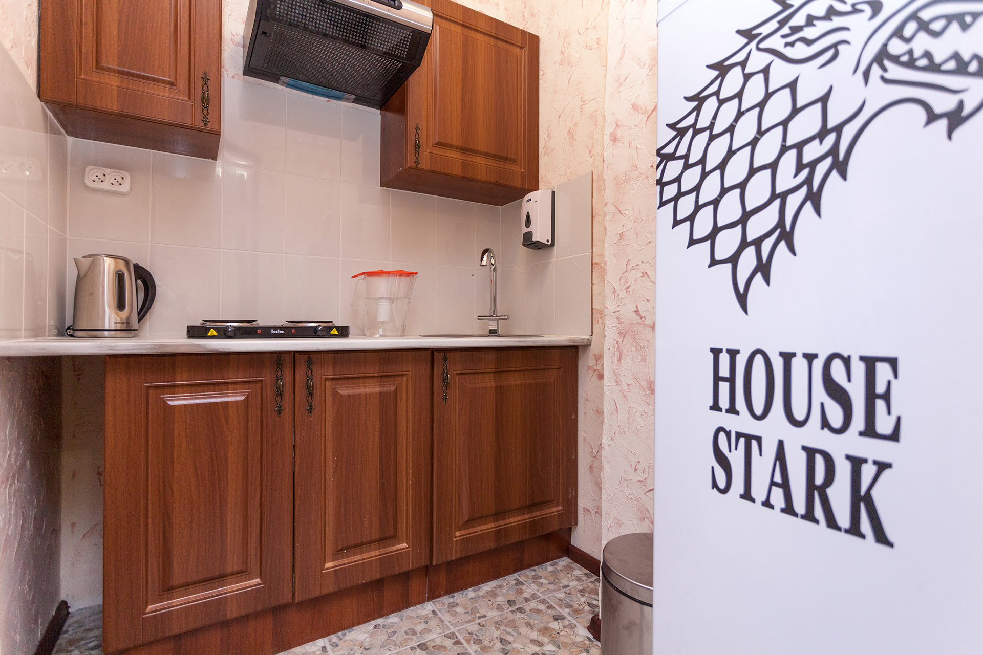 Номера гостиницы «Винтерфелл на Смоленской» оформлены в ярких тонах, с элементами декора из популярного телесериала «Игры престолов». Каждый номер оснащен кондиционером. Гости пользуются общей ванной комнатой.