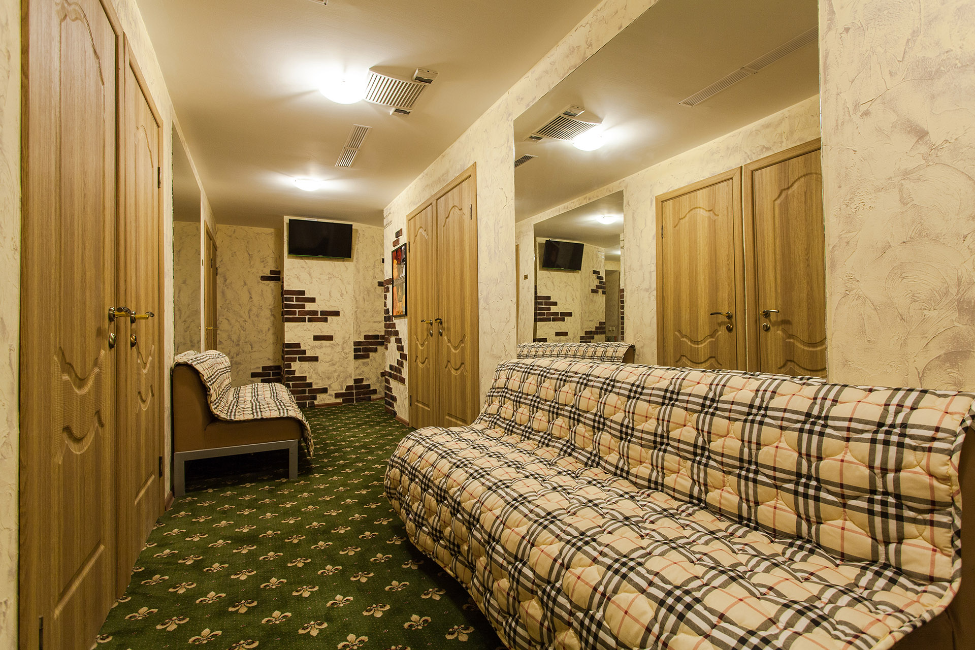 Обращаем Ваше внимание, что в бюджетных номерах нет окон (предусмотрен кондиционер). Гостиница расположена на цокольном этаже.