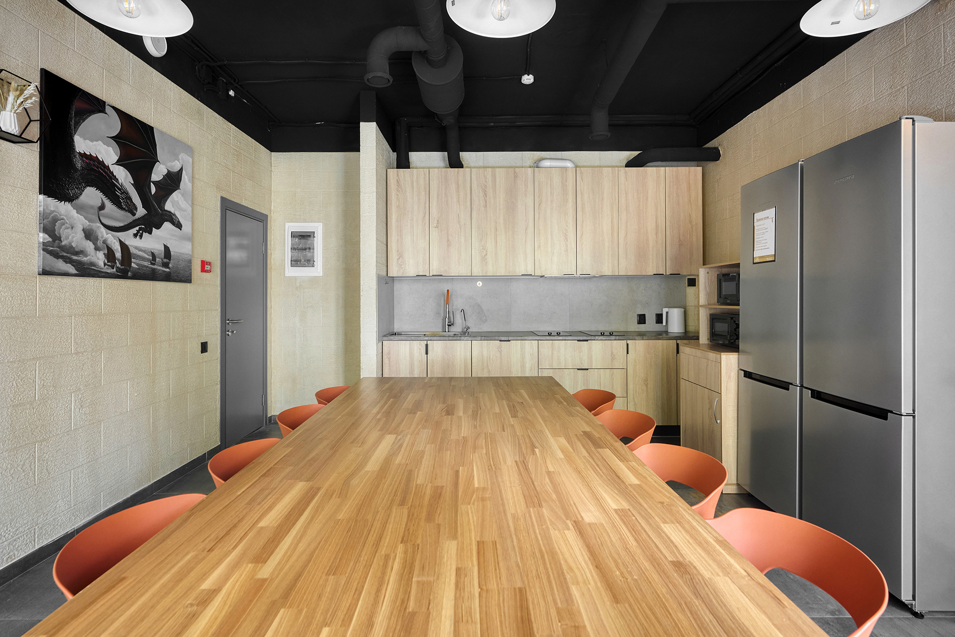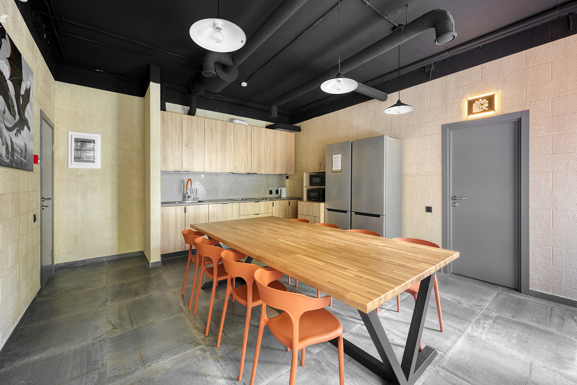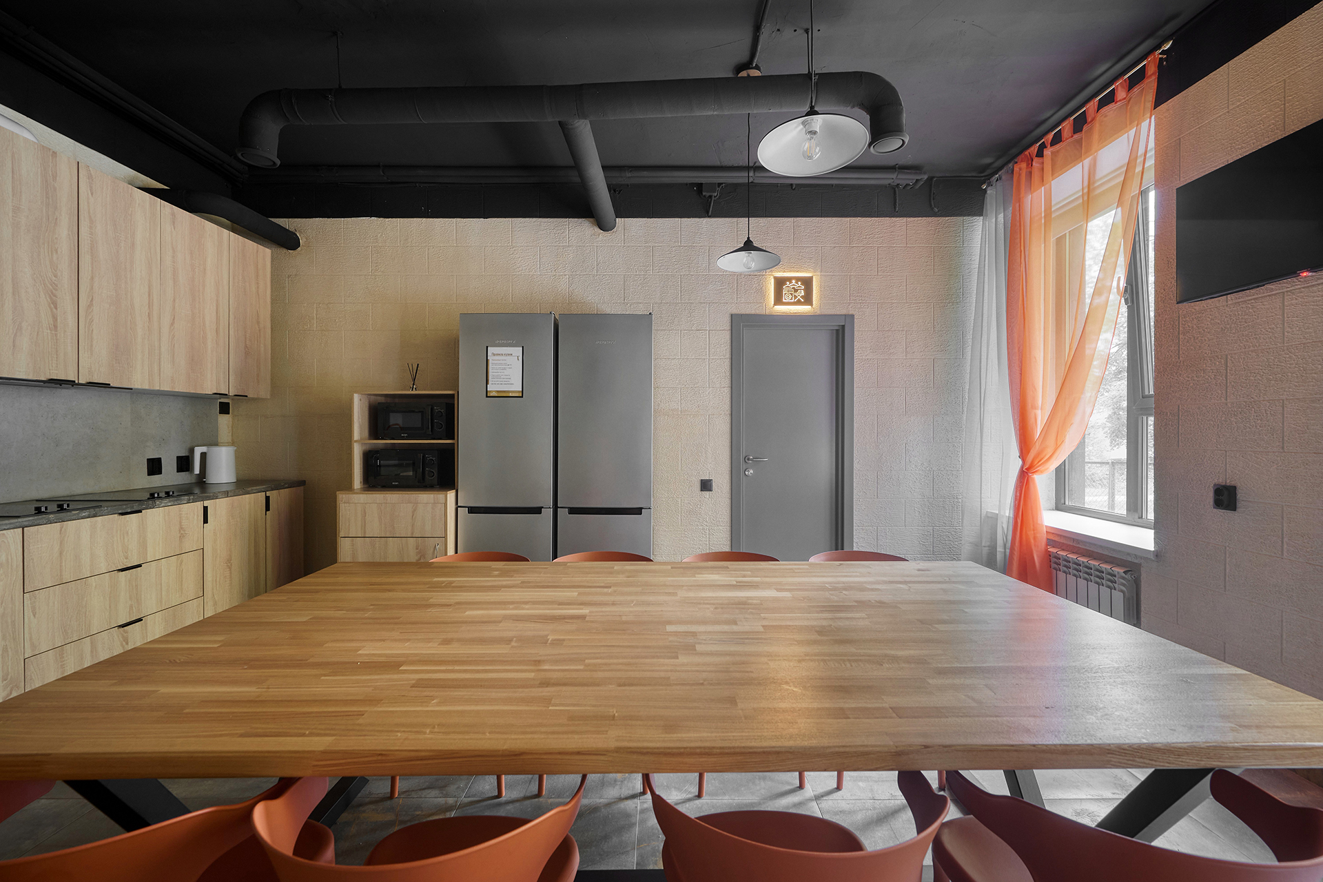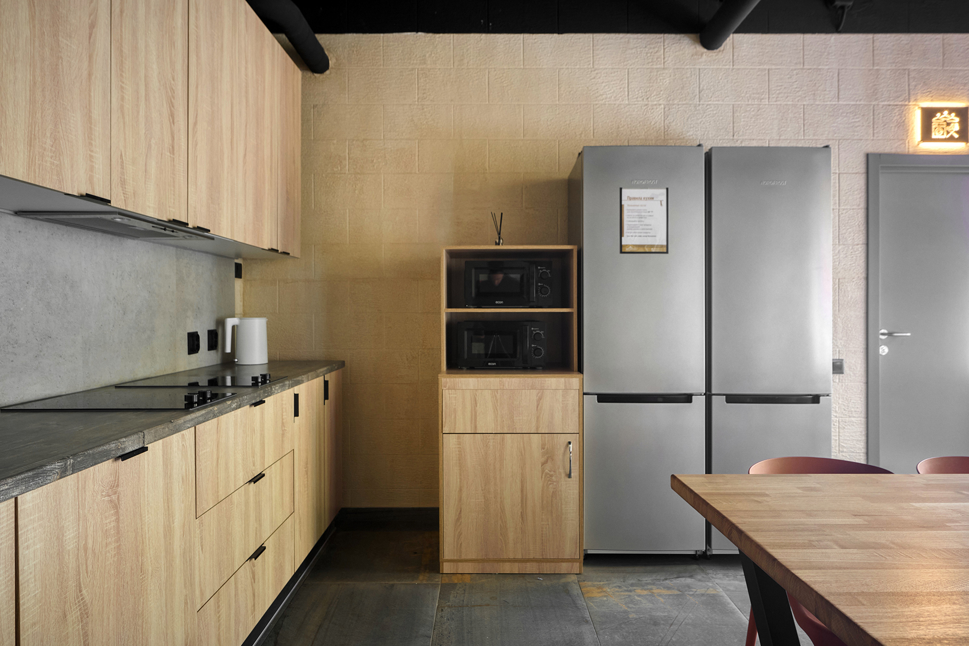 В отеле имеется 2 полностью оборудованных общих кухни с зоной приема пищи, а также зона отдыха с ТВ и рабочими местами для ПК.
